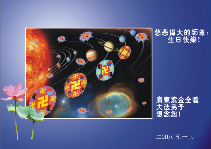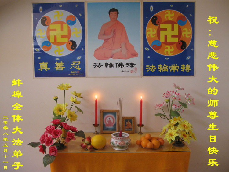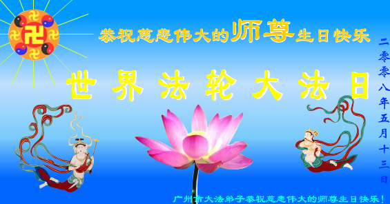 二零零八年五月十日 广东房地产行业大法弟子恭祝师父生日快乐暨法轮大法洪传十六周年!