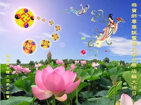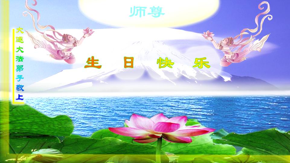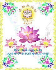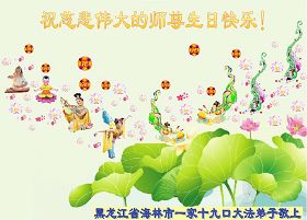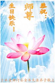 在伟大的师尊生日来临之际,我代表天津塘沽区大法弟子及我们全家人祝师父生日快乐!请师父放心,弟子们一定要更加勇猛精進,以报师恩! 临朐全体大法弟子恭祝慈悲伟大的师父生日快乐!普天同庆世界法轮大法日!