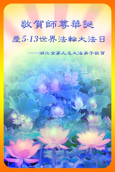 湖北全家九名大法弟子敬贺师尊华诞!庆世界法轮大法日!