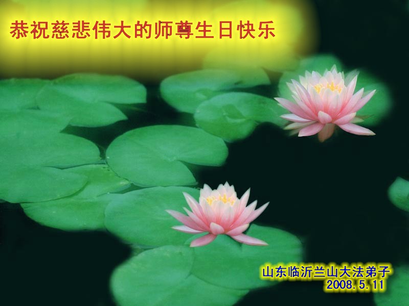 山东临朐县全体大法弟子 二零零八年五月十日 辽宁省凤城市全体大法弟子恭祝师尊生日快乐!