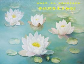 十几年来,师尊为众大法弟子、为众生劳心费力。弟子身受大法福益。再次恭贺师尊华诞。 京东大法弟子拜 石家庄市大法弟子恭祝伟大慈悲的师尊生日快乐!