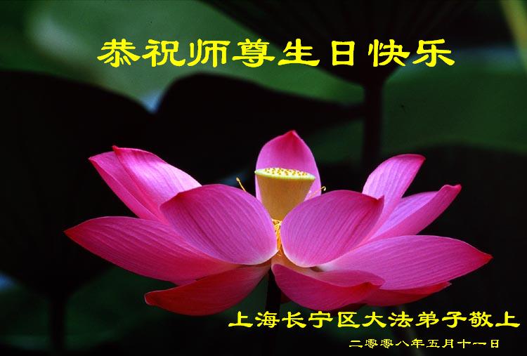 师恩浩荡!无以为报。同化大法!无量光明。 上海长宁区大法弟子恭祝师尊生日快乐