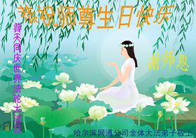 弟子们一定谨遵师尊教诲,在各自的领域里做好救度众生等三件事。 哈尔滨大法弟子祝师父生日快乐!