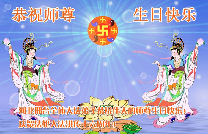 河北邢台全体大法弟子恭祝伟大的师尊生日快乐!庆贺法轮大法洪传十六周年!