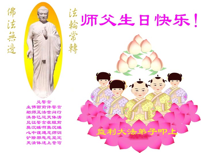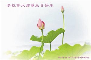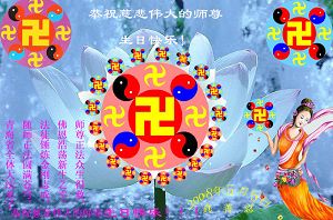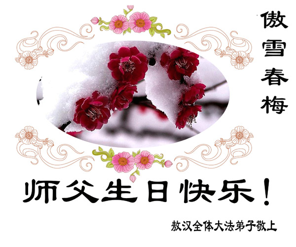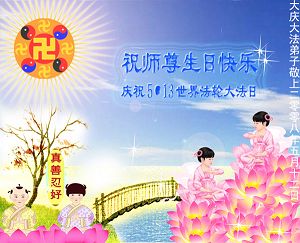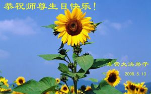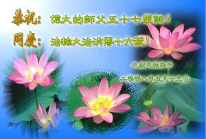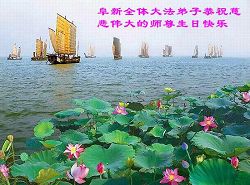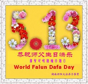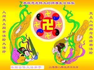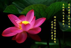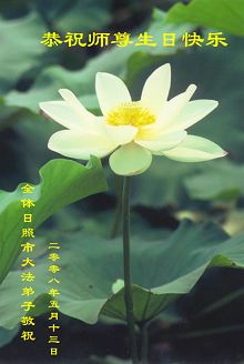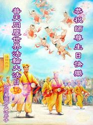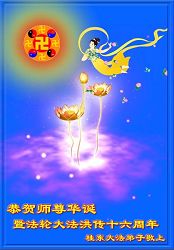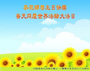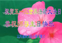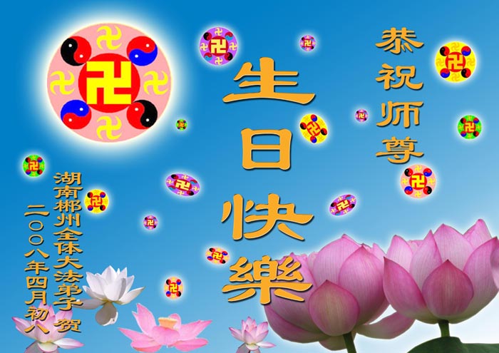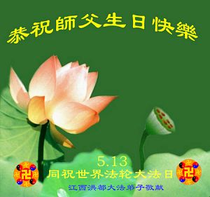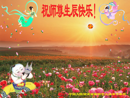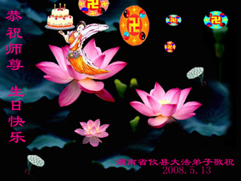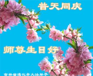 祝慈悲伟大的师父生日快乐!并祝贺法轮大法洪传世界十六周年! 谢谢师父慈悲苦度!黄梅县全体大法弟子一定做好师父要求的三件事,跟上正法進程请师父放心。 上海大法弟子祝师父生日快乐!