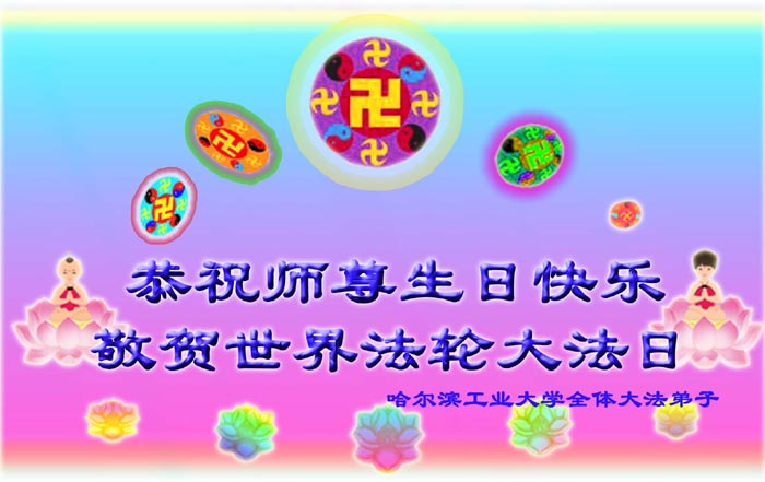 哈尔滨工业大学全体大法弟子恭祝师尊生日快乐!敬贺世界法轮大法日!