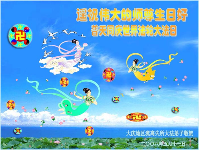 大庆流离失所大法弟子遥祝师尊生日好!普天同庆世界法轮大法日!