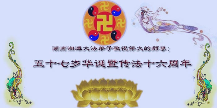 湖南湘潭大法弟子恭祝伟大的师尊华诞暨传法十六周年!