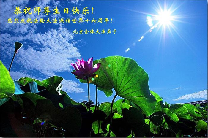 北京全体大法弟子恭祝师尊生日快乐!热烈庆祝法轮大法洪传世界十六周年!
