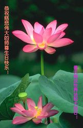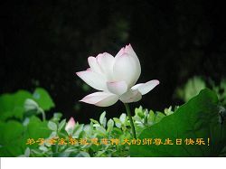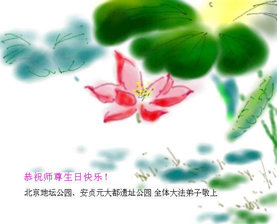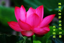 亿万朵莲花静静的开放 在昏暗的中华大地上吐露芬芳 阴霾中有折花的黑手 可莲花的意志是不动的金刚 风吹雨打冬雪秋霜 亿万朵莲花 放射着五彩的祥和的光 岳阳大法弟子敬祝师尊生日快乐!