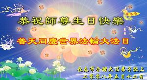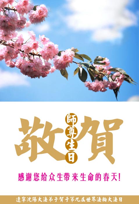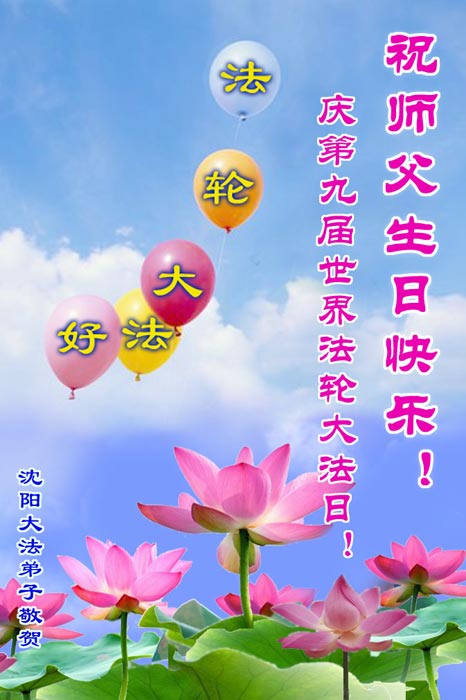 沈阳大法弟子恭贺师尊生日快乐!庆第九届世界法轮大法日!