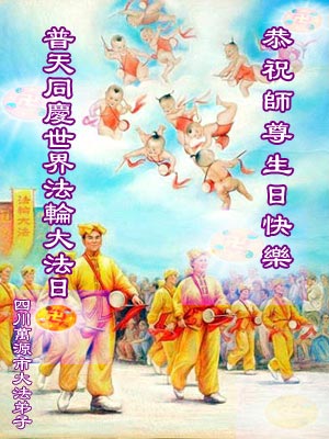 四川万源大法弟子恭祝师尊生日快乐!普天同庆世界法轮大法日!