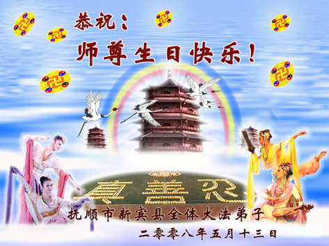 抚顺市新宾县全体大法弟子恭祝师尊生日快乐!
