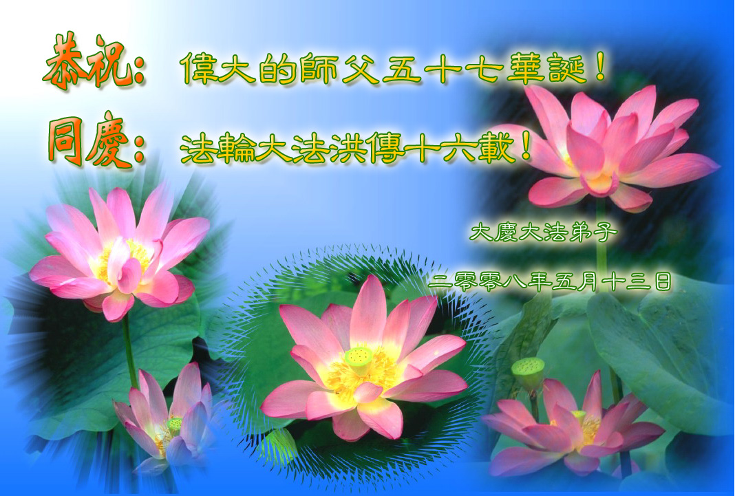 大庆大法弟子恭祝伟大的师父生日快乐!同庆法轮大法洪传十六载!