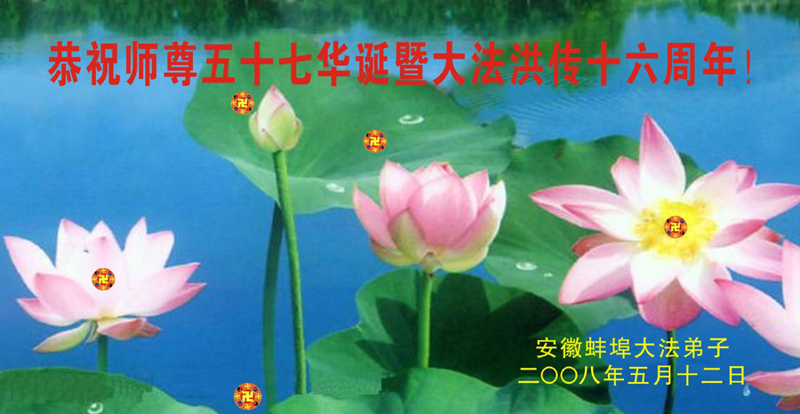 安徽蚌埠大法弟子恭祝师尊五十七华诞暨大法洪传十六周年!