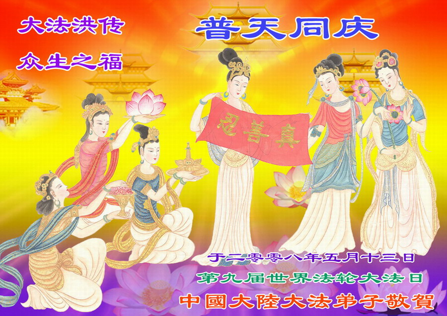 大陆大法弟子全家敬祝师尊生日快乐!恭贺世界法轮大法日!
