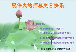 北京朝阳区小关地区大法弟子祝伟大的师尊生日快乐!