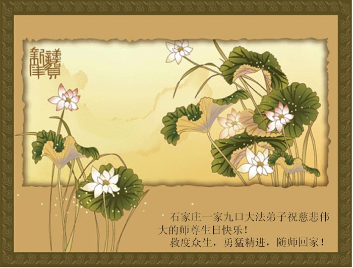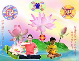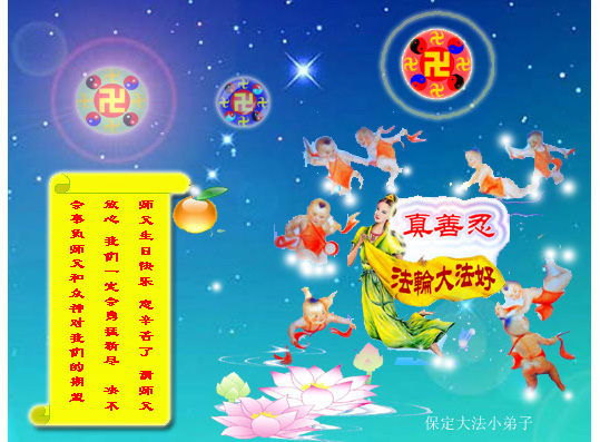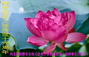 同时也代83岁的大法弟子问师尊生日好! 石家庄教育系统大法弟子恭祝慈悲伟大的师尊生日快乐!颂祝世界法轮大法日!