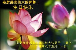 甘肃省庆城县大法弟子恭祝慈悲伟大的师尊生日快乐!