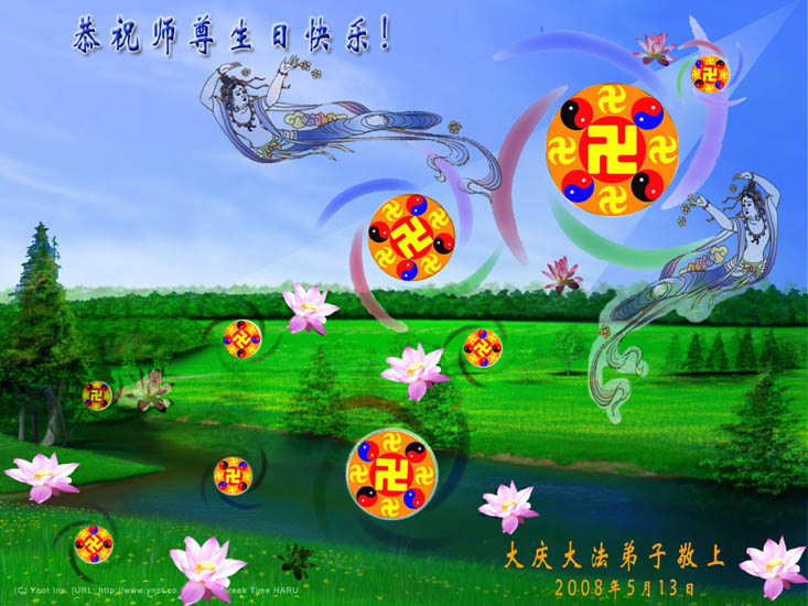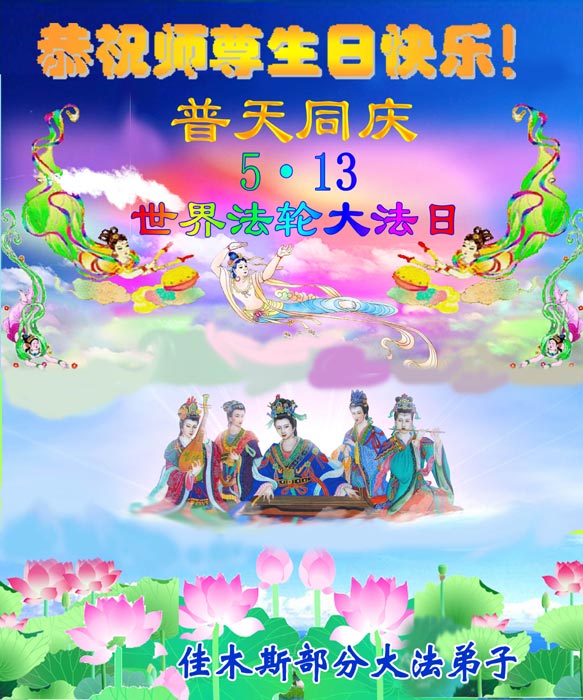 师尊,生日快乐!师尊,我们想念您!并祝全世界大法同修节日快乐! 新野县全体大法弟子合十 二零零八年五月十三日 山东济宁大法弟子祝贺世界法轮大法日!