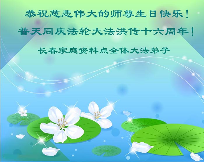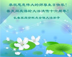 普天同庆法轮大法洪传十六周年! 长春全体大法弟子恭祝师尊生日快乐!