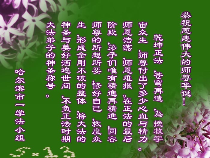哈尔滨全体大法弟子恭贺师尊华诞!同贺世界法轮大法日!
