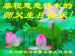 龙口市大法弟子全家九口恭祝师尊生日快乐!