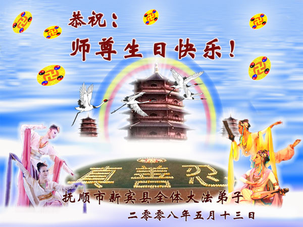 抚顺市新宾县全体大法弟子恭祝师尊生日快乐!