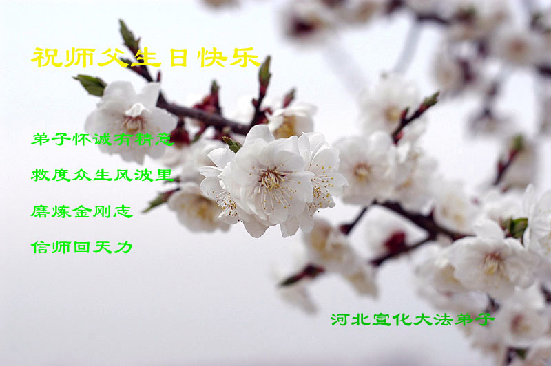 我们莱钢全体大法弟子,都没有亲自参加聆听师父的办班讲法,但是,我们真真切切的体验到师父无时不在的呵护著每个弟子,佛恩浩荡…… 河北省怀来县的大法弟子祝慈悲伟大的师尊生日快乐!
