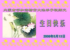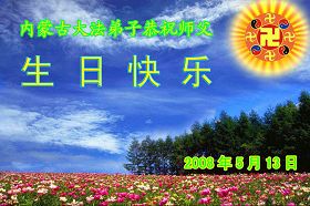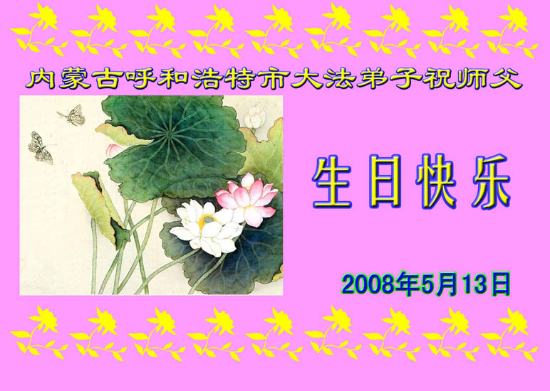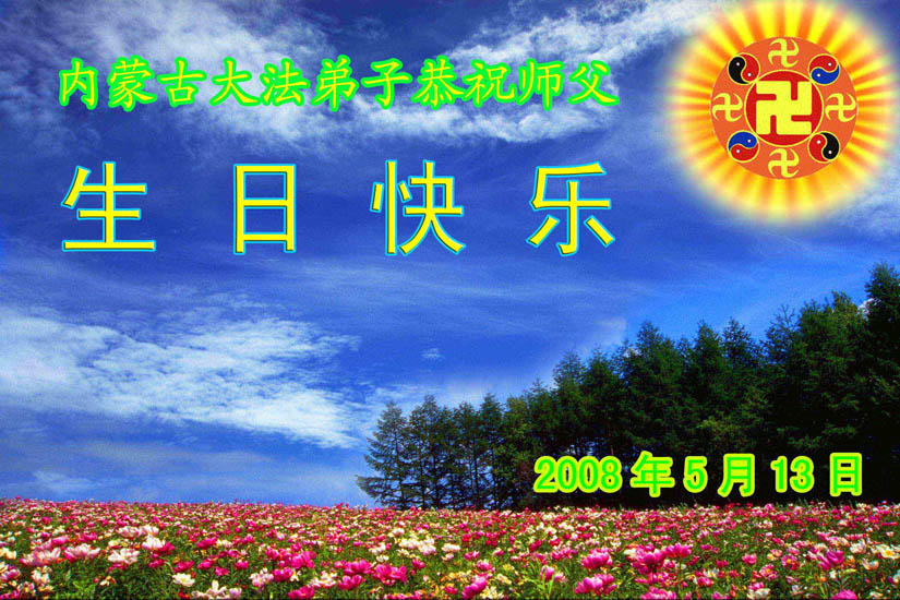 内蒙古呼和浩特市大法弟子祝师父生日快乐! 2008年5月13日 内蒙古呼和浩特市大法弟子恭祝师尊生日快乐!