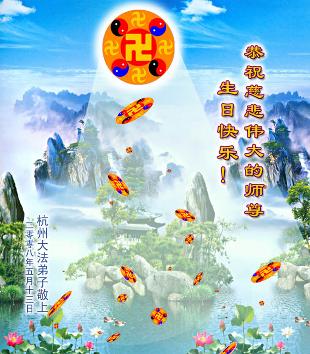 杭州大法弟子恭祝慈悲伟大的师尊生日快乐!