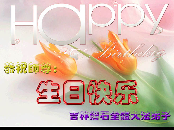 让我发自心灵深处呼声祝贺伟大师尊生日欢乐!用尽宇宙所有语言都表达不了感恩师 尊对我的慈悲苦度,请师尊放心,弟子一定做好三件事,助师正法,完成史前大愿! 揭阳市全体大法弟子恭祝师尊生日快乐!
