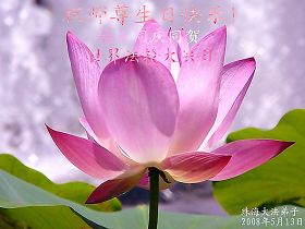 在师尊诞辰到来的日子里,我们祝师尊诞辰快乐并向师尊敬表心语:“我们牢记师尊的教诲,认真做好“三件事”,救度众生的同时,不忘修好自己,随师正法,不辜负师父的慈悲苦度,请师父放心。” 佛恩浩荡牢记心, 真修心性随师行。 千辛万苦无所惧, 齐心合力救众生。 任凭邪恶兴风浪, 震邪灭妖宙宇清。 精進做好三件事, 兑现誓约了心愿。 北京海淀、丰台、燕郊大法弟子敬上 2008年5月2日 北京一资料点的大法弟子恭祝慈悲伟大的师父生日快乐!