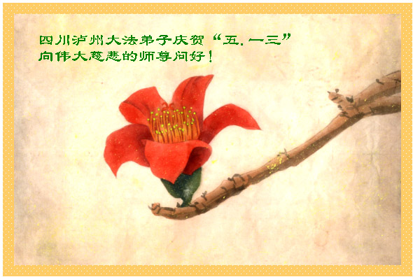 伟大的师尊: 5月13日是世界大法日,是师尊向宇宙内众生开始传授宇宙大法的日子,是宇宙众生永远都最值得纪念的日子。在世界法轮大法日暨师尊生日即将到来之际,我谨代表湖北全体大法弟子向师尊表达最崇高的敬礼,我们一定牢记师尊的教诲,认真做好三件事,救度可救度的世人,不辱正法时期大法弟子的历史使命,完成我们的史前大愿!请师尊放心。 湖北全体大法弟子 二零零八年五月十日 中国大陆军队内的大法弟子恭祝师父生日快乐!
