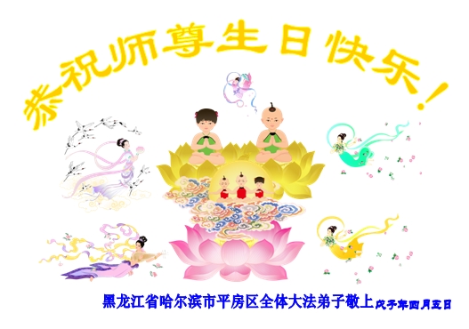 黑龙江省哈尔滨市平房区全体大法弟子恭祝师尊生日快乐!