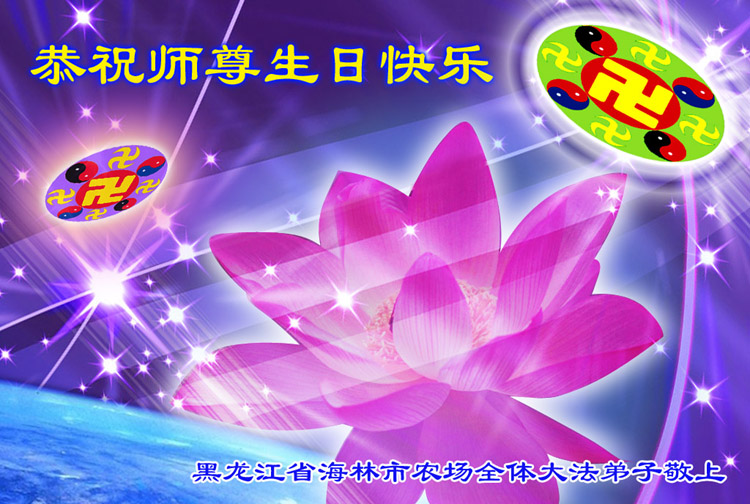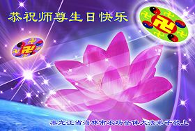 我们一定做好大法弟子应该做的,完成史前誓约,救度更多众生。 北京海淀区二里庄大法弟子祝师父生日快乐!