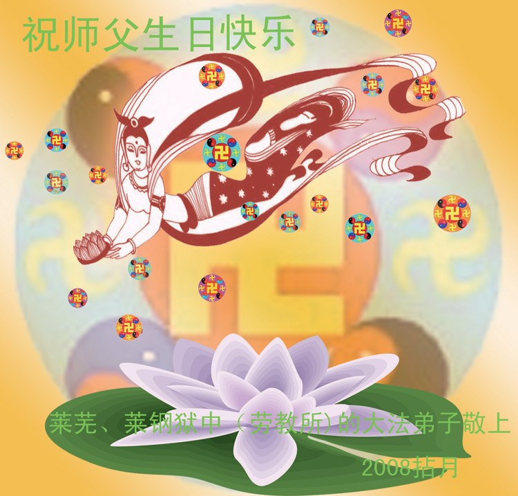弟子一定不负师父的苦度,正念强大起来,排除干扰,跟上正法的進程。 弟子叩上 二零零八五月十四日 被非法关押在太原女子劳教所的大法弟子祝贺世界法轮大法日暨师尊寿辰!
