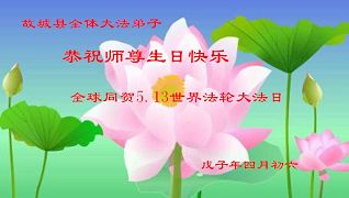 山东农村大法弟子恭贺第九届法轮大法日,师尊世间传法十六周年!敬祝师尊生日快乐!