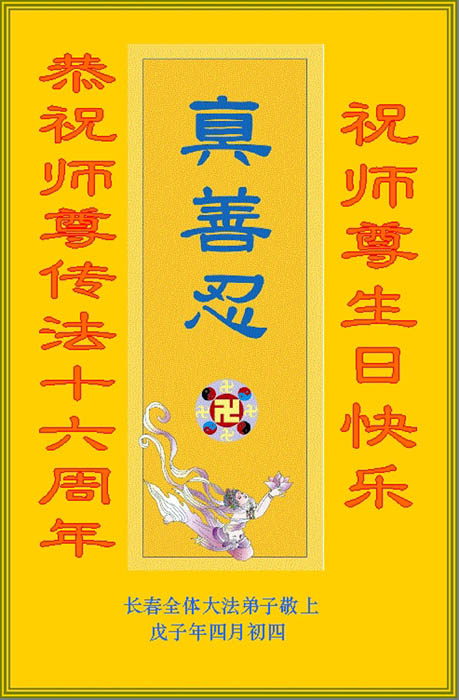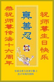 长春大法弟子恭祝师尊传法十六周年!祝师尊生日快乐!