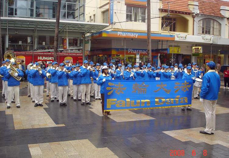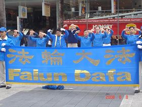 【明慧网二零零八年六月十一日】二零零八年六月八日,法轮功学员们在澳洲悉尼北区著名的曼丽沙滩的歌秀舞台步行街洪法炼功,庆祝“曼丽法轮大法日”。 庆祝曼丽法轮大法日,法轮功学员们演示功法 |