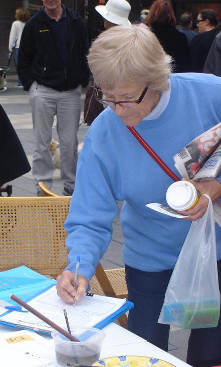 在蒙蒙细雨中学员们坚持演示功法、发放真相资料。天国乐团宏亮的演奏与壮大的队伍引起众游客的围观。演奏的乐曲有“法轮大法好”、“法鼓法号震十方”、“法正乾坤”等,观众中的小朋友们随着音乐手舞足蹈,欢乐无比。法轮功学员的舞蹈队则用优美的民族舞展现了中华民族文化的神韵和法轮大法修炼者的风貌。 当天活动吸引了很多当地民众及世界各地的游客驻足观看,他们与法轮功学员一起欢庆这一殊胜的节日。大法小弟子和其他学员一起为游人们演示折叠莲花,一朵朵美丽的小莲花传达着“真、善、忍”的信息,使游人爱不释手。学员们还向行人讲述法轮大法的美好和正在中国无辜遭受的迫害。明白真相后的人们对功法表示出浓厚的兴趣,并纷纷签名反对中共迫害法轮功,其中有些人表示今后要来曼丽沙滩炼功点学法、炼功。 此次活动的发起人及主持人是斯蒂夫•梅尔尼(Steve Milne)先生。他表示今天的“曼丽法轮大法日”活动主要是为了向民众展示法轮大法的美好。他认为,也许很多民众通过媒体都知法轮功已被中共非法迫害九年了,但不一定真正了解什么是法轮大法以及其给人们和社会带来的美好和升华。法轮功学员因为受到了中共的残酷迫害才向世人讲真相,揭露中共的邪恶本质,但法轮功本身不是一个只是揭露中共邪恶的团体,法轮功学员们以宇宙最高特性“真善忍”为根本指导,按照宇宙演化原理而修炼,通过炼五套功法,使身心受益,道德回升。如今,法轮功已经洪传世界八十多个地区和国家,使这里的人民和团体受益。法轮功学员希望通过这样的洪法活动能帮助这个地区的人们和世界各地游客全面了解法轮功的美好。