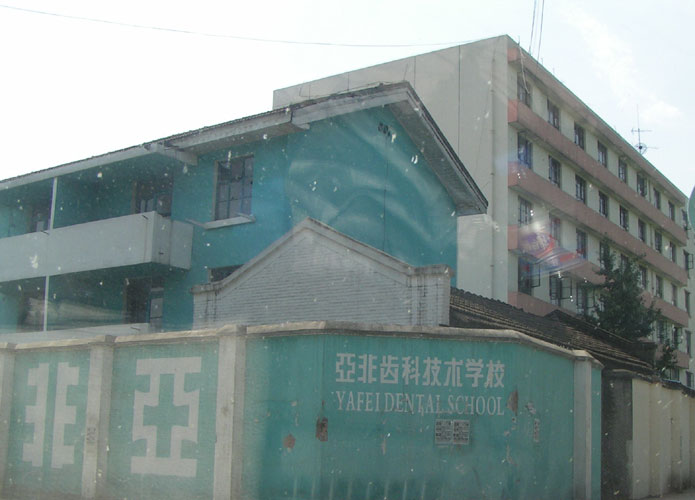 原新津洗脑班大门已被封,隔壁亚非牙科学校已全部划为新津洗脑班范围。   图片:现扩建后新津洗脑班的大门 |