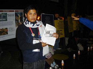 戴明•布科(Damien Burke)是二十岁的澳洲悉尼人,他正在半工半读,他曾用法轮功的题材作为法律系的学习论文,同时他在一个地区的政府部门做心理辅导工作。二十日,在悉尼市中心的中央火车站的进出口处,他和法轮功学员一起高举真相展板,向路过的“世界青年日”的同伴们呼吁:“请帮助制止中共对法轮功的迫害!” 他对记者说:“大约在两年前,我从《大纪元》(英文版)报纸上知道法轮功被(中共)非法迫害的消息。我非常喜欢而且每周要看《大纪元》。我认为他们(法轮功)应该得到人类共同享有的尊贵的人格和人权。我知道天主教在中国同样受到了迫害,因为中共是不能接受任何形式的宗教的。我今天在这里参加世界青年日,因为我一出生就是天主教徒。我希望帮助人们明白:法轮功在这里是呼吁中共停止迫害,而不是希望其他宗教来加入修炼法轮功,在这一点上,我担心有些人也许会被旧的观念障碍了。” 澳洲人邓肯•苏瑟兰德先生(Duncan Sutherland)在悉尼市政厅门口的乔治路上的烛光悼念会上举着真相展板,时而站在法轮功队伍中,时而走出来对过路人讲真相,他表示:“我相信真、善、忍这是普世真理;我相信在这个世界上的每个人都有人权自由;我相信在这里支持这些原则的人都有一颗善良的心,他们是值得我在这里支持的人,我来这里想帮助做些任何我能做的事。” 他还说:“我对(法轮功)的历史的一点了解是因为我有机会上网去查看,还有,我去看过两次“神韵晚会”以及读了许多资料。我读过(著名人权律师)麦塔斯和乔高的报告(指关于调查中共活体摘取法轮功学员器官的调查报告),以及当时澳洲许多新闻媒体对他们(指加拿大外交部前亚太司司长大卫•乔高和著名人权律师大卫•麦塔斯)来澳洲的报道。我当时有点想知道这是什么故事,读后我才知道这是一个非常可怕和非常残暴的故事。我想太多政府对这事想低调处理是因为迫于中国政府给予的政治和经济方面的压力。我认为澳洲政府应该特别针对这件事向中国政府施加压力。” 他还表示:“每个人应有权利享受信仰自由,我们不应该因为争取信仰自由而被迫害。对宗教和信仰的迫害不是一件新闻,但是延伸到如中国政府那样丑陋的做法,特别是‘活体摘取法轮功学员器官’事件,我想这是真正的邪恶。这是比希特勒在二战时对待犹太人更残暴的恶行。我想,在二十一世纪的今天,某些人对他人进行这样的迫害,这是对人性的摧残。每个人都有责任站出来共同关注及制止。我希望给中国政府施加压力来制止这场迫害。在中国至今还发生这样的事,我认为非常令人遗憾。” 里奇•泰皮欧先生(Ritche Tarpio),是从卡塔尔(Qatar)来悉尼参加庆祝“世界青年日”的年轻人,当他看到法轮功被中共非法迫害的消息后,他说:“我真的不喜欢凶杀,我不喜欢迫害。我们天主教徒是尊重人人有权利选择信仰自由的,任何人对其他人的攻击是对上帝的攻击。所以我要带回去更多的真相资料,我将让更多的人知道正在中国发生的这个灾难,我认为它(迫害)应该被停止。” 阿哈默德先生(Ahmed)和三个朋友从阿拉伯杜拜(Dubai in the United Arab Emirates)来悉尼度假,看到烛光悼念会后非常震撼,停下来举起真相展板,并一再询问如何才能加入呼吁制止对法轮功的迫害队伍,他们能够帮助什么。 阿哈默德先生说:“我来悉尼度假,走过这里才知道正在发生的这些事,我自愿把这些征签表带到我的国家,去为停止对法轮功的迫害收集征签,我们需要尽快停止迫害,我看到那些坐在这里的人举着(在中国的)家人被迫害的照片,我真的很悲伤。我希望所有这些(悲惨故事)不久将停止。