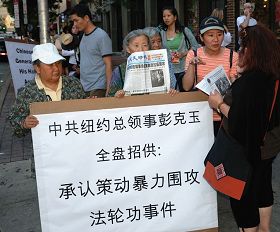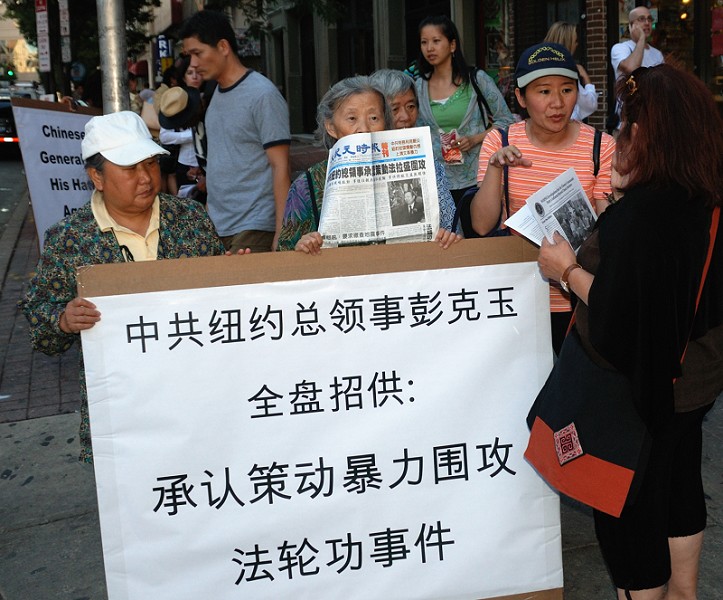 据多家媒体报道,五月十七日在纽约法拉盛发生了中共帮凶暴力攻击和殴打法轮功学员事件,五月二十一日,“追查迫害法轮功国际组织”的特别调查员拨通了中国驻纽约总领馆彭克玉总领事的电话,就攻击事件询问彭克玉,在电话录音中,彭克玉供认不讳的承认了他在法拉盛事件中扮演的怂恿暴力、煽动仇恨的角色。彭克玉的录音电话曝光后,震惊了西方社会。六月二十六日中午,纽约市议员托尼•阿维拉在市政府大楼前举行新闻发布会,要求纽约皇后郡地区检察官办公室以仇恨犯罪起诉所有袭击法轮功学员的暴徒,并敦促美国联邦调查局(FBI)调查中共驻纽约领事馆背后指挥法拉盛攻击事件的指控。托尼•阿维拉议员说:“任何国家的大使馆和领事馆以任何形式干扰美国公民的权利,这是一个非常严重的侵犯。如果罪行成立,他就被驱逐出境。不管他是谁。” 据报道,大纪元记者就彭克玉来费城一事,向费城市长办公室发出问询。八月七日下午二点,记者接到费城市政府代表爱瑞卡•阿特伍女士打来的电话,阿特伍女士表示,彭克玉此次来费城完全是一位名叫黄华亨的中介人安排的,并强调费城市政府跟彭克玉没有任何联系,也完全不知道他是个惹争议的人,以及他的所作所为。 晚七点左右,彭克玉上台发言后,匆匆离开。一位费城华人说,“刚才听彭领事在台上讲了很多爱国的话,如果彭领事真爱国,就应该拿出实际行动来,退出中共,证明自己是真爱国。” 有一半亚裔血统的福朗瑟西卡•库边(Francesca Kubian)站在中国城牌坊前看到一个横板上写着“中共纽约总领事彭克玉全盘招供:承认策动暴力围攻法轮功事件”(Chinese General Consul Peng Keyu Boasted Inciting the Hate Crime Against Falun Gong),把她吸引住了。她说:“看到这个牌子后,我惊呆了!这让我想起来几年前在纽约时报上看到的一篇文章,写着一个加州的法轮功学员去中国而被捕被迫害。他们(中共)是错的,法轮功不是政治,只是精神信仰,看来中共不能容忍任何精神信仰。” 正当库边女士在跟法轮功学员谈话时,纽约总领事彭克玉被一伙中国人围着,匆匆在这个大牌子前走过。库边女士说:“刚才我站在这里跟米希尔说话,他们‘砰’的撞着我往前冲,差点把我推倒了,非常野蛮,并说一些不好听的话。”住在纽泽西的库边,这次来费城参加一个培训,她说她要把这些真相告诉给她的学生们。 在横板前,很多华人议论纷纷:一位来自北京的费城华人于女士说,身在海外的中国人,都以自己是中国人为荣,都希望中国在国际上受人尊重。但是彭领事的做法真是叫我们在国外抬不起头来。 一名费城老华侨说:“当今给中共做外交官真是不易呀!想当年民国的时候,咱们中国的‘第一外交官’顾维钧,在国外处处为国争光,给中国人争脸,在一九一九年巴黎和会上夺回中国的主权和领土完整,赢得世界外交界的赞誉,还参加《联合国宪章》起草工作并代表中国在《联合国宪章》上签字。今天中共的外交官,堂堂一个大国崛起的总领事,竟然要冒着身败名裂、被人家驱逐出境的风险,操起黑社会老大的行当,在国外怂恿中国人打中国人,真是丢尽了中国人的脸呐!” 另一位费城王女士说,“现在美国要调查并驱逐彭领事,这件事对中国人来说很不光彩,损害了中国的国格,在海外给中国人丢了脸。希望彭领事在被赶出美国之前,学习陈用林,抛弃中共,站在已经退出中共的四千万爱国勇士这一边,为自己、也为中华民族争取美好的未来。” 在活动现场的费城市政府警察局负责人贺门•托玛斯先生说:“今天,我们格外注意保护费城法轮功学员的人身安全。我们绝不会让法拉盛事件在费城发生。刚才我注意到彭克玉的一个随从在看到法轮功学员时脸上露出了焦躁不安的表情。” 宾大精神病学系一位教授的先生曾参加奥运会,她陪先生一起参加了中国城举办这次冠军夜的贵宾招待会,她说费城市长和中共纽约总领事都去跟大家问候。当听到中共纽约总领事彭克玉策动暴力围攻法轮功事件,而被国会议员、律师要求追查并遣送出美国时,她说:“绝对不应该让这种人呆在美国!这跟美国的自由太不相符。幸亏我刚才没跟他握手。”站在她旁边的费城娱乐部的一位先生说:“我刚才跟他合影,后来一看是虚的。看来是不应该跟这种人站在一起。” 曾参加一九八八年南韩奥运会划船比赛获银奖的大卫•克姆普提(David Krmpotich)说:“能在世界舞台上比赛,我感到很荣幸,因为那是我一生的努力。”克姆普提现在经营一家电影公司。他对中国糟糕的人权“感到很不幸,美国绝对不会做那样的事。” 费城英文报纸《每周新闻》八月八日详尽报道了彭克玉因参与迫害法轮功而面临被调查和起诉的情况。 据悉,美国纽约著名刑事犯罪学律师罗伯特•高堤雷表示,无可争辩的证据表明中领馆总领事彭克玉在法拉盛暴力事件中,积极参与了怂恿人仇恨犯罪,从而触犯美国联邦刑事法。毫无疑问彭克玉鼓励暴徒攻击那些和平的(法轮功)修炼者。他没有资格继续在这个国家呆下去。七月十八日,法轮功发言人张而平先生向美国国务院官员彼得先生介绍了法拉盛暴力事件的始末,并递交了彭克玉的录音电话。近日法轮功学员已向美国司法部提交诉状,要求美国政府依法将彭克玉以及参与迫害法轮功的帮凶驱逐出境。有三十五名美国会议员写信给总统布什要求驱逐彭克玉和中共