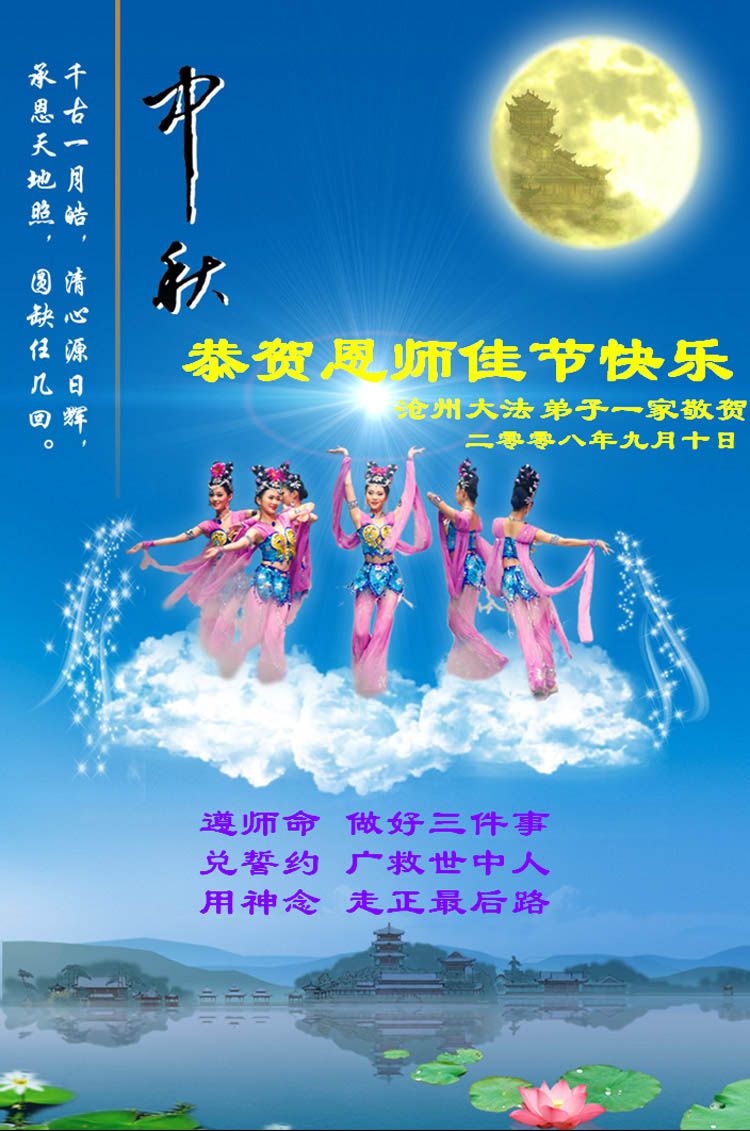 河北省廊坊大法弟子向慈悲伟大的师尊祝贺中秋节好!