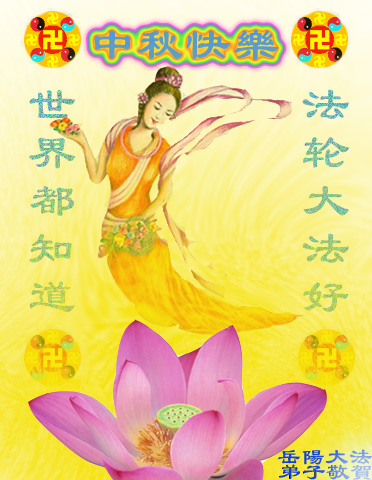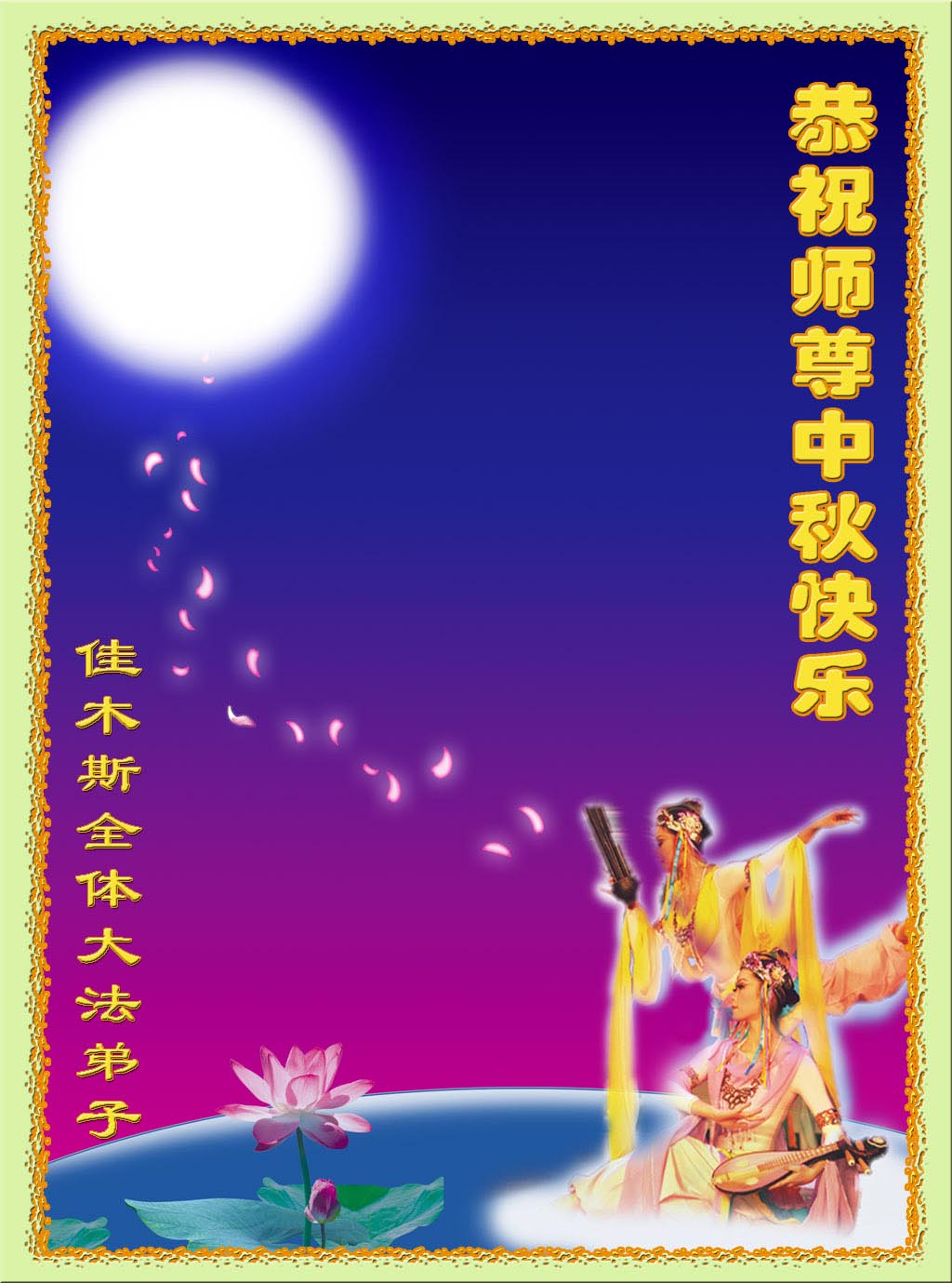 中秋佳节敬师尊, 法轮大法正乾坤。 学好天书转法轮, 品德高尚意境纯。 助师正法救世人, 众生三退有好运。 邪恶全灭宇宙新, 蹬上天梯回家真。 佳木斯同修三姐妹 二零零八年九月六日 衡阳教育界大法弟子恭祝慈悲伟大的师尊中秋快乐!