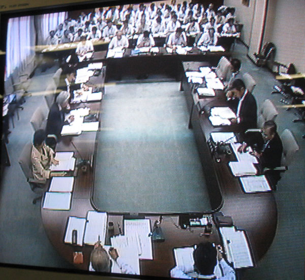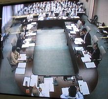 【明慧网二零零八年九月十四日】二零零八年九月十日,日本熊本的法轮功学员们向熊本市议会议长提交了“关于制止中共对法轮功迫害的请愿书”、并在十二日召开的熊本市议会总务委员会会议上,由三名代表对请愿书的宗旨以及附加内容进行介绍。包括总务议员在内有八十多位有关官员出席了会议。与会者聚精会神的听取了对法轮功的介绍及中共残酷迫害法轮功的真相。一些议员认真的做了记录。 熊本市议会总务委员会议室 |
