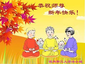 新年钟声将近!在这特殊的时刻,全体高密市大法弟子给慈悲伟大的师尊拜年了:师尊新年好!师尊啊:在您的慈悲呵护下弟子们又走过了这风风雨雨的一年。在这九年多的迫害中,师尊为了正法救度众生付出了多少心血与代价。每每想起师尊的慈悲苦度深感佛恩浩荡。弟子无以言表,无以回报,借新年到来之际再次问候一声:师尊您辛苦了!在新的一年里,我们一定要更加勇猛精進,认真查找自己修炼与正法中存在的不足之处,及时归正它。努力做好三件事,更多的救度世人!不辜负师尊的浩荡佛恩。 高密市全体大法弟子 二零零九年一月十四日 锦州市三口之家大法弟子给师尊拜年!师尊过年好!