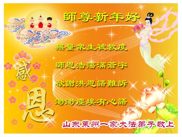 山东潍坊大法弟子向师父拜年!恭祝师父新年好!