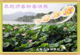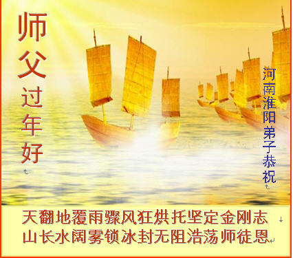 大法正乾坤 转眼又一春 法徒逢佳节 祝愿圣师尊 大法传福音 众生沐洪恩 天清自有日 合十敬师尊 大陆一城市一个区全体大法弟子敬上 山东德州大法弟子恭祝师尊新年好!